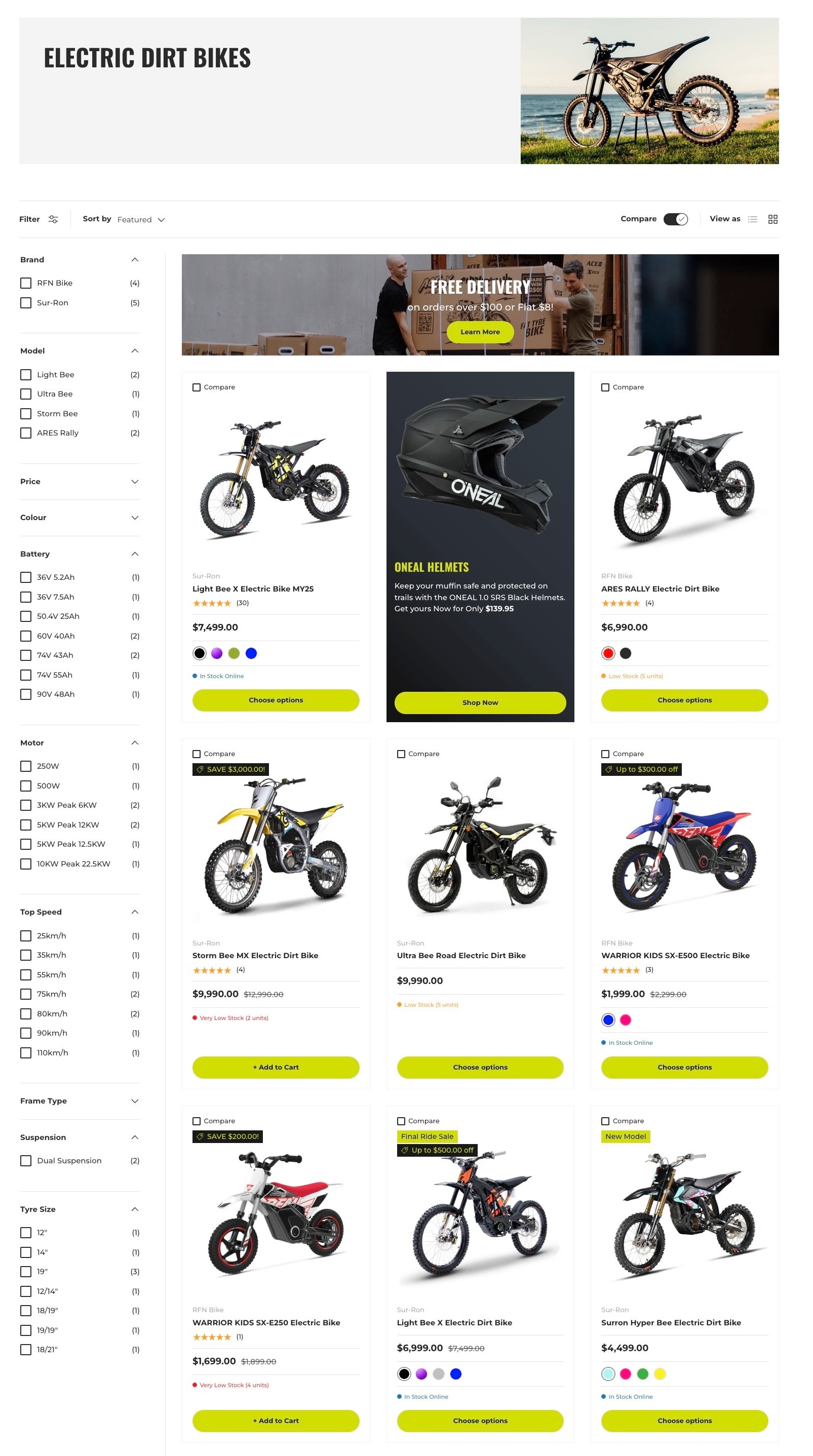 To eliminate this guesswork and guide customers to the right items, Ampdbros introduced an advanced filtering system on its collection page. Shoppers can now refine their search by brand, model, color, battery capacity, motor, and more, ensuring that they only see products suited to their exact needs. At a glance, color swatches on the product cards provide a quick visual reference, making it simple to compare options without clicking into each product for basic details.