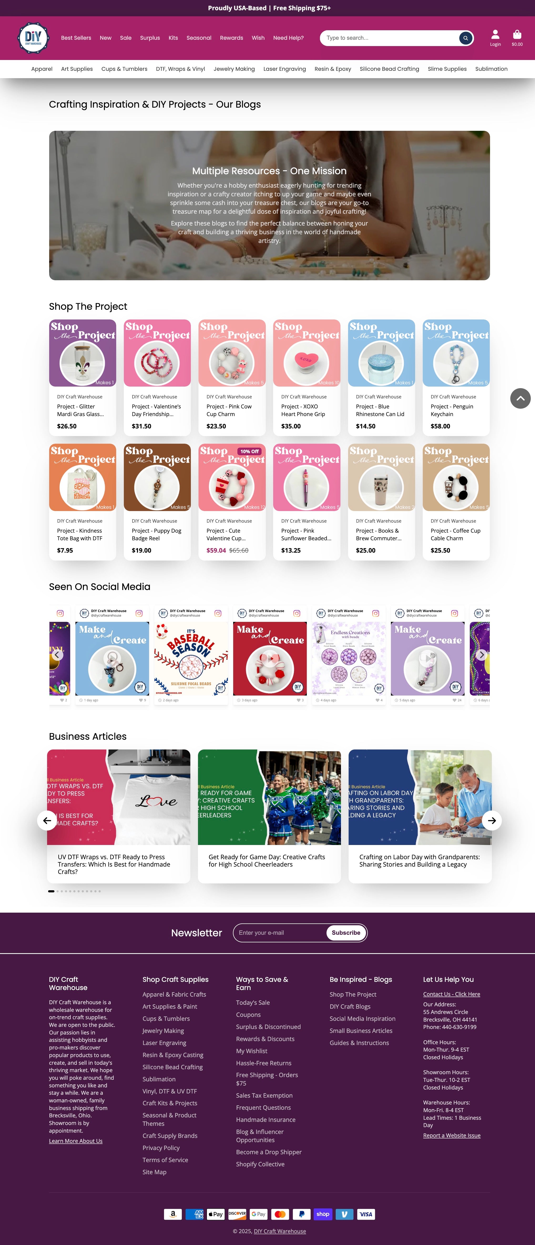 DIY Craft Warehouse addresses this gap by providing dedicated Crafting Inspiration and DIY Projects blogs. These resources function like a virtual spark, offering themed project galleries and guiding customers on how to pair the store's products with various crafting techniques. Rather than leaving shoppers to guess how materials might fit together, these curated hubs appear to walk them through the creative process step by step, showing that impressive results can be achieved with the right guidance and tools.